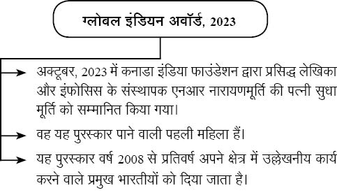 प्रश्न – अक्टूबर‚ 2023 में कनाडा इंडिया फाउंडेशन द्वारा किसे ग्लोबल इंडिया अवॉर्ड‚ 2023 से सम्मानित किया गया?
