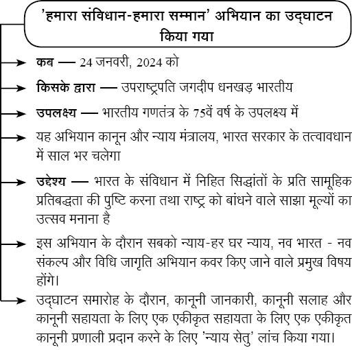 प्रश्न – जनवरी‚ 2024 में किसने ‘हमारा संविधान हमारा सम्मान’ अभियान का उद्घाटन किया?